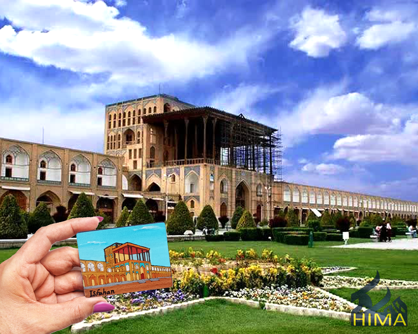 Дворец Али-Капу исторический дворец в городе Исфахан в Иране, расположенный с западной стороны площади Имама, напротив мечети шейха Лотфоллы. Дворец строился в XVI веке. Здание насчитывает шесть этажей, его высота — 48 метров[6]. Вид площади Имама с дворцом размещён на банкноте 20 000 иранских риалов образца 2004 года[7]. Высокие ворота, место церемонии, сыграли роль символического перехода между закрытой структурой комплекса и социальностью площади.